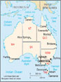 L'Australie est bordée au nord-est par la mer de Corail, au sud-est par la mer de Tasmanie et à l'ouest par l'océan Indien.