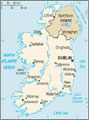 L'Irlande, pays situé en Europe de l'Ouest, est délimitée au nord-est par l'Irlande du nord, à l'est par la mer d'Irlande et à l'ouest par l'océan Atlantique.